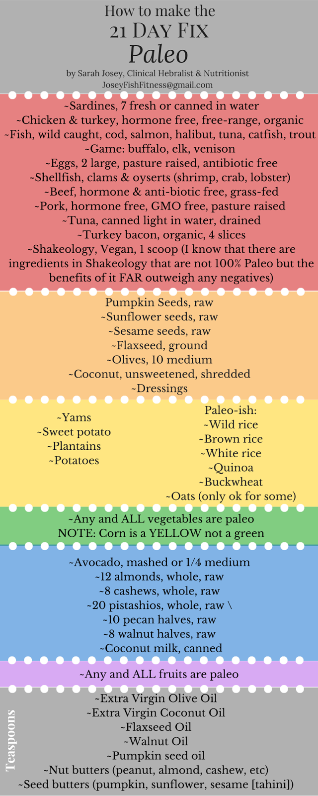 I put together this 21-Day Fix Paleo food list to take all the questions out of following this program. You’ll have a ton of energy, feel satisfied and get AMAZING results following the meal plan. I also drink the vegan Shakeology every day–the best meal of my day hands down.